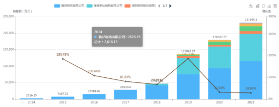 (2)市场容量大:国内2021年的销售额超过23亿元,同比增长28%,市场增速可观,仍有 很大开拓空间。